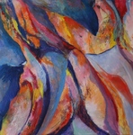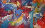 2010groot 3 D doek ( geen lijst nodig ) met veel kleur grof opgezet met kwast en structuurpasta